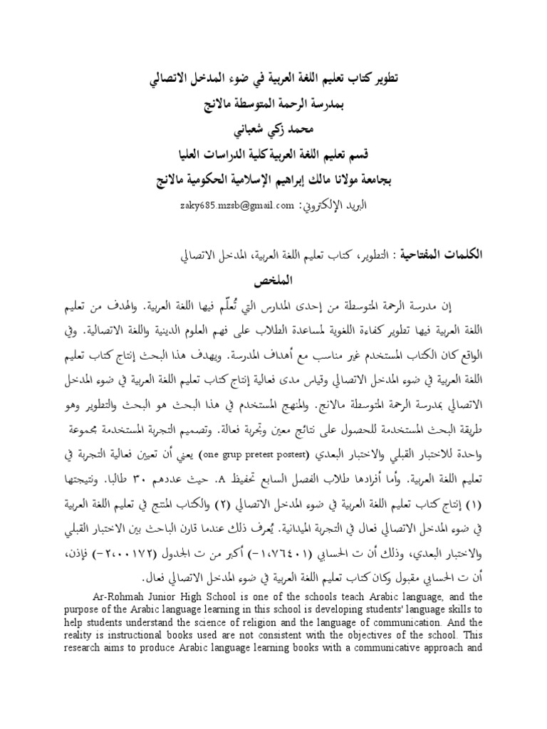 تطوير كتاب تعليم اللغة العربية في ضوء المدخل الإتصالي Evaluation Methods Psycholinguistics