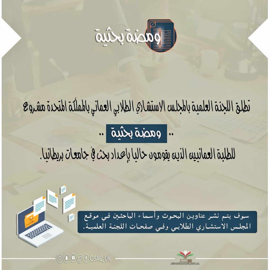 ال لجنة العلمي ة في Osac On Twitter ضمن مشروع ومضة بحثية يسر اللجنة العلمية أن تضع بين أيديكم عناوين بعض بحوث الطلبة العمانيين الدارسين الذين أكملوا دراستهم في المملكة المتحدة في سلسلة من التغريدات باللغة
