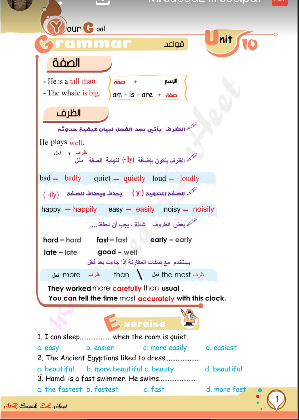 ملخص قواعد اللغة الانجليزية للصف الثاني الاعدادي في ورقه واحده مستر سعيد الحيت الصف الثانى الإعدادى المنهج المصري
