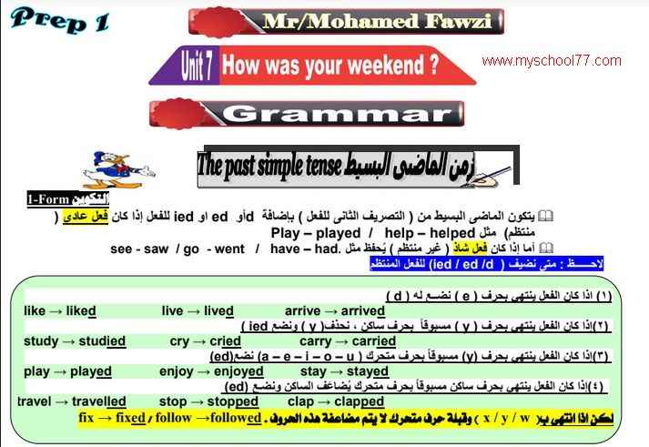 مذكرة قواعد اللغه الانجليزيه للصف الاول الاعدادي الترم الاول 2021 شرح وتدريبات جرامر أولى اعدادي لمستر محمد فوزى