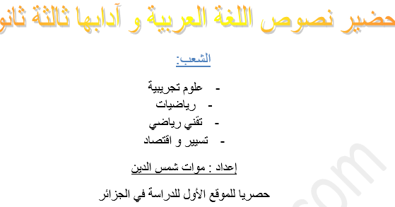 تحضير نصوص اللغة العربية للسنة الثالثة ثانوي الشعب العلمية