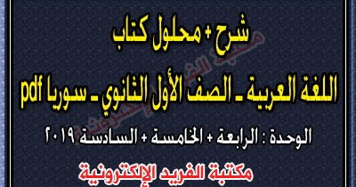 حلول كتاب اللغة العربية ـ الصف العاشر الأول الثانوي سوريا Pdf الفصل الثاني مكتبة الفريد الإلكترونية