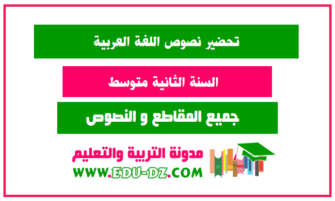 تحضير نصوص اللغة العربية للسنة الثانية متوسط الجيل الثاني