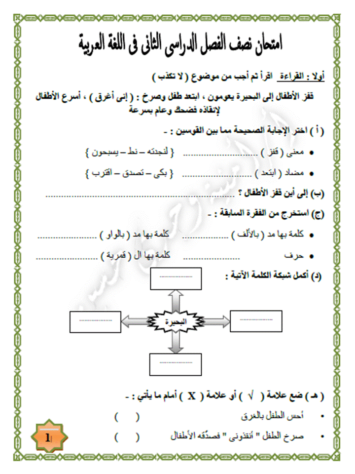 مراجعة اللغة العربية الصف الاول الابتدائي الترم الثانى 2018