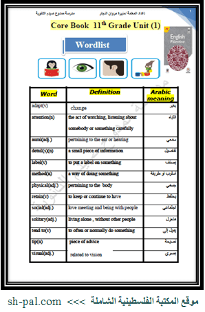 معاني كلمات اللغة الانجليزية للصف الحادي عشر الفصل الأول المكتبة الفلسطينية الشاملة