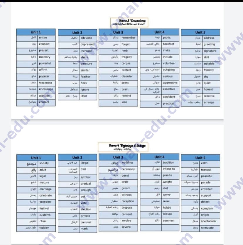 كلمات الحفظ في ثيم 1 و 2 و 3 و 4 انجليزي الصف 11 ف 2