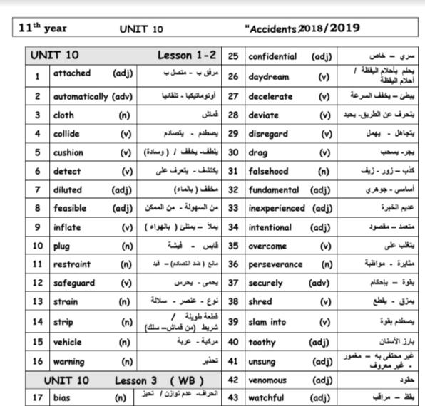 اهم معاني الكلمات الوحدة العاشرة 10 بالعربي والانجليزي للصف الحادي عشر الفصل الثاني Youtube