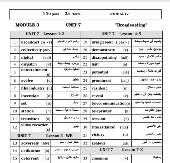 الكلمات المقررة لغة إنجليزية للوحدات 7 9 الصف الحادي عشر الفصل الثاني 2018 2019 مدرستي الكويتية