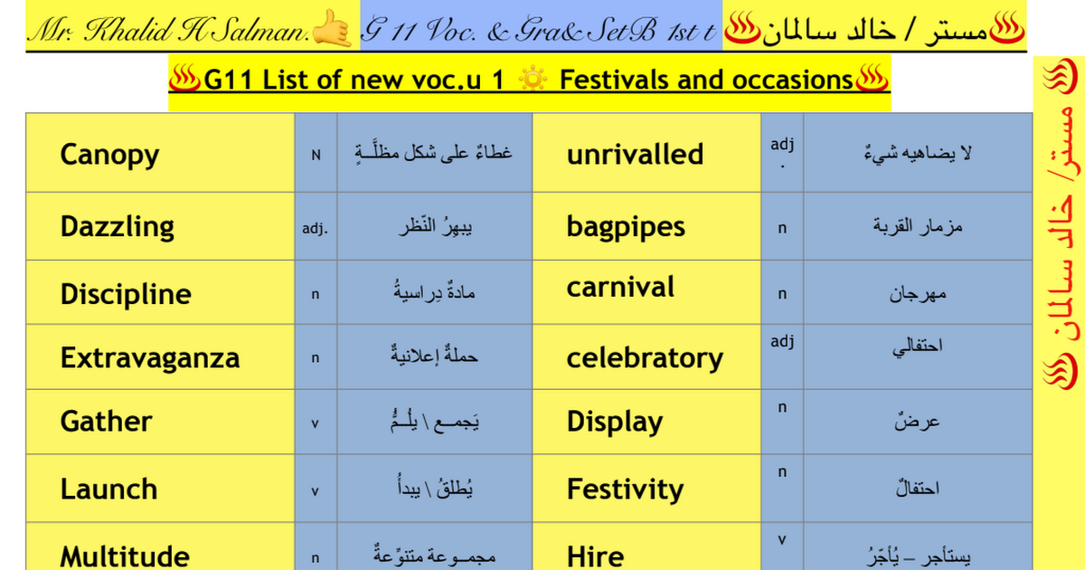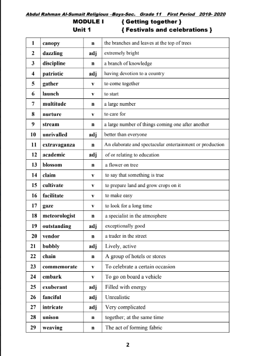 Grade 11 Unit 01 Vocabulary كلمات الصف الحادي عشرالوحدة الأولي Youtube