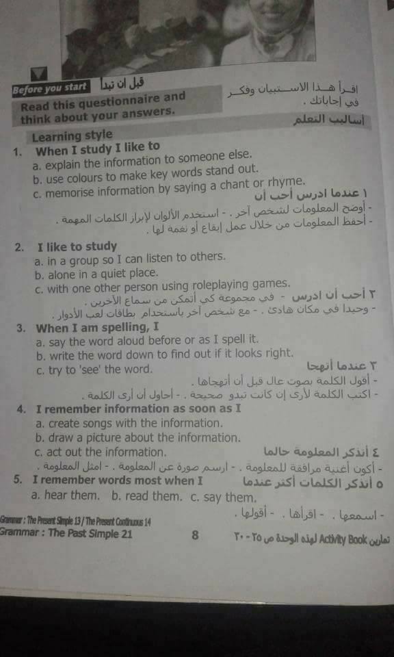 للصف الثامن اللغة الانجليزية إجابة أسئلة الوحدة الأولى والثانية Youtube