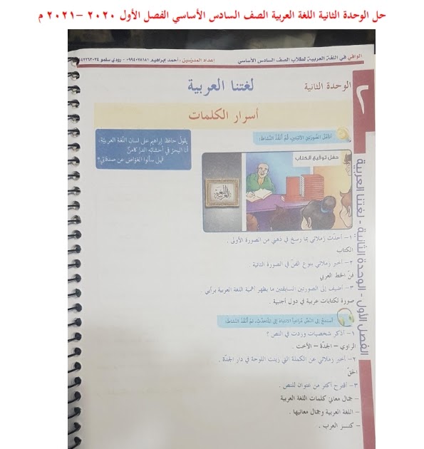 حل كتاب اللغة العربية للصف السادس الفصل الاول 2020