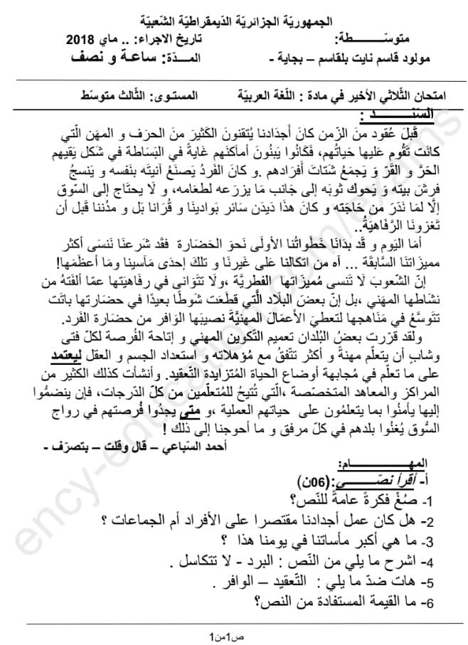 مدونتي هي محفظة مفتوحة لأساتذة اللغة العربية والتربية الإسلامية للتعليم المتوسط وتلاميذهم يجدون فيها دروسا وفروضا واختبارات ومذكرات وأشياء أخرى والهدف من ذلك تحقيق التواصل بينهم وبين الأستاذ خليفة. مواضيع وحلول شهادة التعليم المتوسط في الرياضيات من 2007 الى 2017 في ملف واحد pdf. تحميل جميع نصوص فهم المنطوق اللغة العربية للسنة 3 الثالثة متوسط الجيل الثاني قد يهم ايضا.